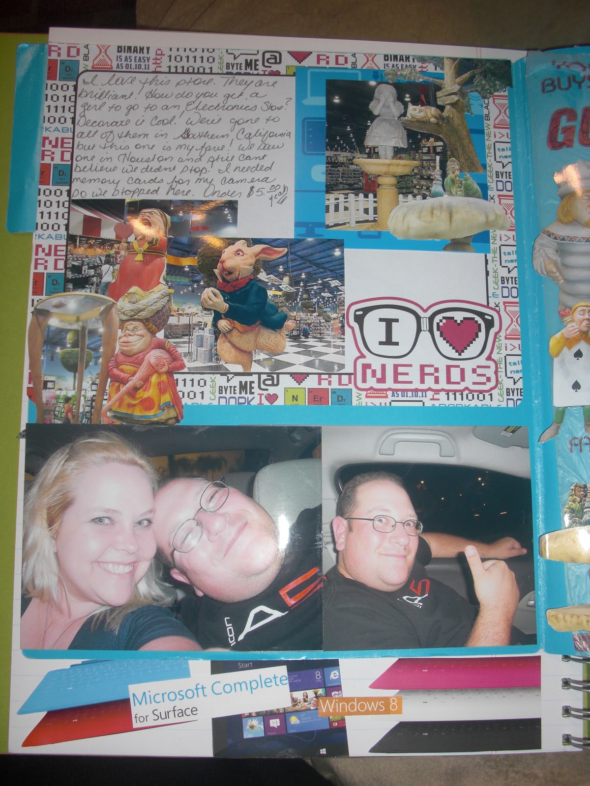 I used the nerd file folders I scored at Wal Mart for .15!!!! SMASHED about going to the Microsoft store and the new tablet SURFACE! (Ohhh I love it). The inside of the folder is SMASHED about later on that day going to Fry's electronics. We had a fun nerdy day.